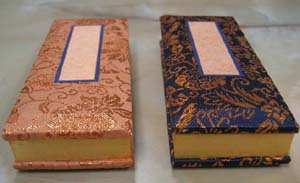 金襴鳥の子紙の過去帳サイズ、色、日入り日無し、をご選択ください。サイズ金額は、下のプルダウンよりご選択確認できます。過去帳は、亡くなられた方の戒名(法名)、没年月日、俗名、行年(享年)などを、命日の日付のページに記入します。見台(けんだい)にのせて、月命日の日に開いてお参りします。見台より一サイズ上のものをお選びいただくとよいです。見台3寸→過去帳3.5寸見台3.5寸→過去帳4.0寸 4.5寸以上は、両開8行で、罫線に横線が入り二段になっています。